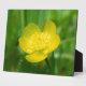 Buried in the tall green grass is a sunny yellow buttercup sparkling with fresh raindrops.