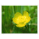 Buried in the tall green grass is a sunny yellow buttercup sparkling with fresh raindrops.