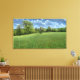A rich green landscape, with a field of tall grass edged with trees under a deep blue sky full of clouds. A gnarled dead tree stands by itself in the middle of the field.