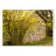 Early blooming forsythia fronts an old granary near the Skyline Drive, Virginia