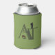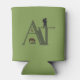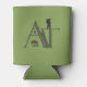 The letters "AT" in olive green are the foundation for the design on this can cooler. Incorporated into the lettering are some of the natural attractions of the Appalachian Trail including the silhouette of a wild pony, wildflowers, the silhouette of a hiker and an extra peak on the "A" to resemble mountains. The phrase "The Appalachian Trail" running along the inside of the wider leg of the "A" completes the design.