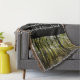 A quality printed throw has its advantages. This is a much finer weave throw than its loopier cousins, and though lighter, it is worth the investment for custom room accessorizing. The back is much prettier than the typical brown, and the fringe on the long sides very vivid, the selvage nicely done. Before photographing, I washed the throw in cold water, delicate, with a thicker woven throw the same size. On tumble dry low, this throw was dry in half the time as the other. This is a very practical quality if you use throws for furniture covers or to wrap up in frequently. The sleekness of the fabric makes it a great layer for accenting or protecting without the feeling of sitting on too much stuff. Perfect for napping or when you feel a light chill coming on. The color printing is beautiful and on this fabric, matched the design and color of my Photoshop image. This is an advantage for blending room fabrics and colors. The fringe on the short sides prints the colors from the design image and therefore varies from the side fringe. I streaked a white fractal line through the plaid pattern to give the illusion of weaving. This printed as crisp as an illusory thread, and put some white in the short side fringe, showing another advantage of print vs loomed- for artistic purposes, line lines, detail, and color integrity can be planned and preserved. My loomed throws have color limitations and more of a needlepoint texture. Print throws reproduce an exact image. The throw felt a little stiff straight out of the package, but this went away in the first delicate wash. Of course I searched the wash water for ink or bleeding and there was none.