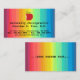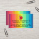 These whimsical chiropractic business cards feature apple with spine logo at the top and on a vertical ombre rainbow background (both sides)