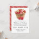 Amaze your guests with this elegant wedding invitation featuring a beautiful basket full of apples with modern typography against a white background. Simply add your event details on this easy-to-use template to make it a one-of-a-kind invitation. Flip the card over to reveal a red and white stripes pattern on the back of the card.