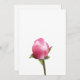 A pretty apple blossom bud in dark and light pinks with four small green leaves peeled away from the opening flower.