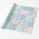 Apple Blossom Pink, Blue, Green Faux Patchwork Wrapping Paper