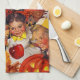 Bobbing for apples can be dangerous on Halloween as these kids at a Halloween costume party find out. This funny Halloween kitchen towel is a great, kid friendly Halloween decoration.