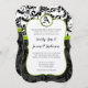 Mediaeval Renaissance Elegant Apple Green and Black Damask Monogram Wedding Invitations