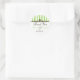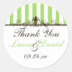 This 1.5" round apple green and white stripes with brown scrolls wedding favour thank you sticker matches the wedding invitation shown below. Use it to attach to your wedding favours, or as an envelope seal for your thank you cards. Other shapes and sizes are available.