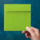 Apple green on both the inside and outside of an envelope.