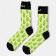 Green apple with leaf icon. Seamless pattern. Custom background colour. Custom top stripe colour. Custom text on each sock.