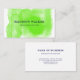Stylish business card in a minimalist typography design. Add your name and job title in elegant navy blue fonts against a splash of apple green watercolor. An eye catching and trendy design in strong colours.