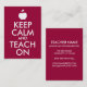 Red white customisable apple shape "Keep Calm and Teach On" parody design for teachers based on the classic poster. You can delete the contact information on back or change the font size and style.