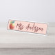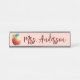 Modern Teacher Desk Name Plate. Design features apple icon on blush background and a name in burgundy trendy lettering. Perfect as a gift for your teacher.
