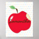 Apple nursery poster with name and dot background