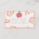 This cute and modern "the apple of my eye" girl baby shower diaper raffle ticket features apples and apple slices on a cream background framed by a light pink border. The reverse side features a pink background with apple patterns. Personalise it for your needs. You can find matching products at my store.