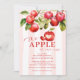 Celebrate the upcoming arrival of your little one with the "Apple to Our Eye" baby shower invitation. This charming design features delightful red apples on branches, complemented by a whimsical apple with a heart cutout, all set against a soft pink stripe background. Perfect for a sweet and memorable gathering, this invitation sets the tone for a joyful celebration filled with love and laughter. Make your event unforgettable by inviting your guests with this enchanting and heartwarming invitation.