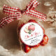 Add a sweet finishing touch to your Apple of Our Eye baby shower with these round favour stickers. Designed with watercolor apples, blossoms, and a red gingham border, they’re perfect for sealing favour bags, jars, or gifts. Personalised with name and date for a charming keepsake.