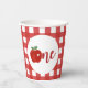 The Apple of our Eye is turning one! Apple themed first birthday party cups.