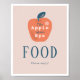 This cute "the apple of our eye" girl's 1st birthday food sign poster features a red apple with navy blue leaf on a pink background framed by a white border. Personalise it for your needs. You can find matching products at my store.