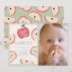 This cute and modern "the apple of our eye" boy's 1st/first birthday photo invitation features apples and apple slices on a cream background framed by a light green border. The reverse side features a light green background with apple patterns. Personalise it for your needs. You can find matching products at my store.