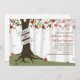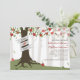 A fall wedding livestream virtual wedding invitation featuring an illustration of apple trees. Trunk wrapped with banner can be customised with bride & groom's names. Wording is from bride and groom together with their families.