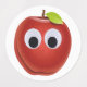 The design you describe seems charming and playful. A red cartoon apple with large googly eyes gives the object a lively and animated personality. The red colour of the apple could indicate its freshness and liveliness, while the smile and big wiggling eyes add a friendly and fun touch to the design.The use of cartoon elements, such as the oversized eyes and smile, reinforces the childlike and entertaining nature of the design. It could give the impression that the apple has some kind of character or even a personality of its own, making it suitable for various applications, such as in children's books, comics or as a decorative element.Overall, the design conveys a positive and fun atmosphere through the combination of red colour, comic style and human-like expression.