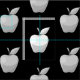 Silver apple with leaf icon. Seamless pattern. Custom background colour.