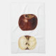 A vintage illustration of a shiny red apple on a quality white tea towel. Simple and sweet.