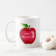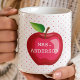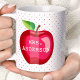Apple Teacher Gift Personalised Polka Dots Coffee Mug. Cute teacher appreciation gift with a red apple and polka dots. Makes the perfect teacher Christmas gift. Personalise this custom design with your own name or text.