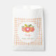 Send guests home with a sweet reminder of your special day using this charming favour bag from the “The Apple of Our Eye” collection. Featuring a sweet trio of patterned orange, red, and pink apples with a heart detail on a soft ivory background, this bag can be personalised with the mum-to-be’s name for a thoughtful touch. The fall-inspired look matches perfectly with the invitations and party décor. Ideal for holding treats, small gifts, or keepsakes, it’s a delightful addition to a baby girl’s orchard or rustic-themed shower.