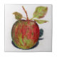 A colour pencil drawing of a red and green apple adorns this decorative tile!