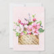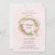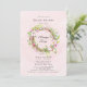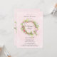 Design features a printed coloured with floral element in shades of blush pink over greenery leaves branch wreath and apple tree blossoms on a light pink watercolor background.. Great for your wedding celebrations!