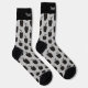 White apple with leaf icon. Seamless pattern. Custom background colour. Custom top stripe colour. Custom text on each sock.