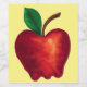 Pretty red apple drawing with a big green leaf on a pale yellow background