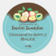 Sliced apples with leaves on this cute fruit home canning label for your applesauce, butters, and pie filling, featuring a white lattice or lace background and personalized with you text, name, and choice of background color.