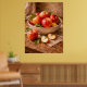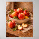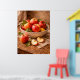 A timeless still life photograph of fresh apples in a rustic bowl, styled with warm tones and natural textures. Ideal for kitchen and dining room decor.