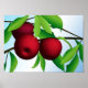 "Apples on a Branch print" - mixed media graphic design, digitally enhanced vector drawing of ripe apples on a branch with green leaves