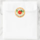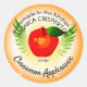 Red apple with wings and faux sparkling stars on this "homemade by", "from the kitchen of" gift tag stickers or canning labels, personalised with your text, name, and choice of background colour, perfect for putting the finishing touch on your homemade foods, sweets, and treats.