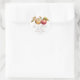 The sticker is made on wonderful paper and had no problem sticking to the bag that I purchased to put it on. I wanted to find a design that would be cute for the bride and groom and this one fit the bill as it has cute "bees" buzzing around and the wedding was taking place in a town called "Bee Cave". The packaging was great and protected the stickers. The website is easy to navigate and there are so many color choices. I had no problem finding a color that the bride was using on everything else selected. The design was adorable and there were many to choose from. You can make the figure as larger or smaller and you can place the photo and writting whereever you want to in the sticker. The printing is fabulous..better than expected.
