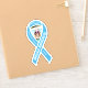 Show support for a loved one fighting childhood apraxia of speech with this blue ribbon apraxia awareness car magnet. Design features the light blue ribbon symbol with the child's photo in the centre, and customisable white text on the ribbon. "Every child deserves a voice" appears on the other loop of the ribbon. Perfect for fundraisers.