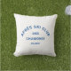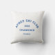 Après Ski Club, cool blue ski resort crest, outdoor pillow. Personalise with the year of your ski trip, ski resort name and location. The perfect memento for a group destination ski trip or as decor for an après ski theme party. Designed to match our Après Ski Club Collection.