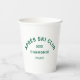 Après Ski Club, winter green ski resort crest paper cups. Personalise with the year of your ski trip, ski resort name and location. Perfect for a group destination ski trip or for an après ski theme party. Designed to match our Après Ski Club Collection.