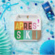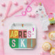 Modern ski-themed après-ski design, in colourful colour blocks and coloured letters. Alpine ski opening, ski resort, ski home design. Wonderful winter sports fun gift for a skier in your circle of friends, co-workers, or family. Retro skiers artwork design. Skiers skiing ski home decor, Ski team, ski coach gift.