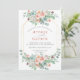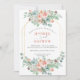 This wedding invitation radiates soft romance and countryside charm, framed by a delicate cascade of pastel florals—roses, peach blossoms, and creamy petals nestled among gentle greenery. The arrangement creates a graceful border that draws the eye inward, while the clean, centred layout and ample white space lend an air of elegance and calm. With its muted palette and botanical accents, the design evokes a warm, heartfelt celebration—perfect for a summer afternoon at a scenic venue.