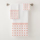 A stylish apricot and white diamond-patterned bathroom towel set.