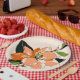 This striking looking paper plate features a large single apricot coloured azalea against a warm tan background. A clean, simple yet striking original design that coordinates w/ HoMeArts Azalea series of dishes, table linen, clocks & more.