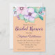 A colourful and pretty apricot bridal shower announcement with a floral theme. The top of the card features a lovely floral arrangement of pastel coloured flowers and purple berries. The same floral arrangement is on the reverse of the card. All details can be personalised easily to suit.