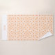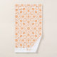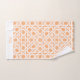 Moroccan style weave trellis geometric pattern in mellow apricot and white. The hand and bath towels have a single white stripe where a monogram or name in matching font can be personalized.