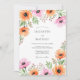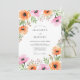 Delicate watercolor illustrations of soft orange and pink poppies adorn the edges of this artwork. Vibrant greenery and tiny floral sprigs create a fresh and airy botanical border. The palette of apricot and blush tones evokes a romantic and joyful mood, perfect for an outdoor seasonal event.